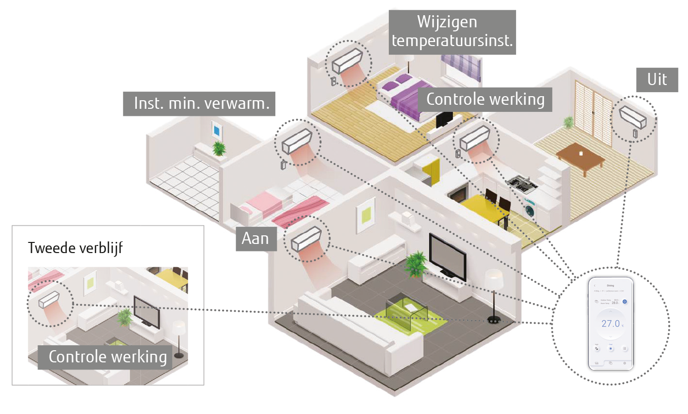 - Bediening op afstand: Creëer het perfecte binnenklimaat voordat u thuiskomt, zodat u direct bij aankomst kunt genieten van optimaal comfort.